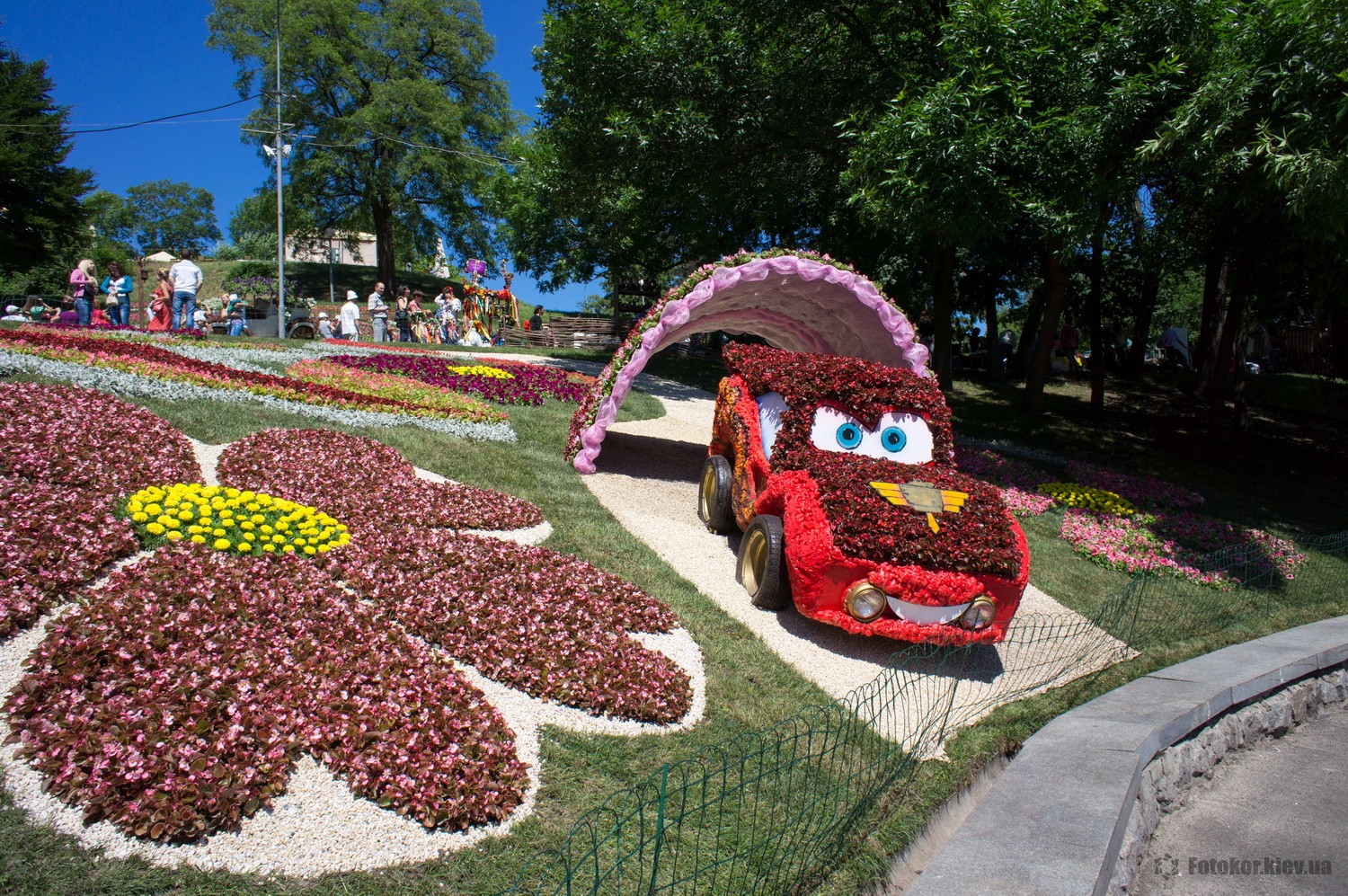 На территории Печерского ландшафтного парка (Певчее поле) в Киеве прошла необычная выставка цветов, объединяющая в себе технологию и природу, под названием «Выставка зеленых авто». На выставке представлена история развития колесного транспорта, в виде 10 экспозиций созданных ведущими дизайнерами 10 районов Киева — от повозки до болида «Формулы-1».
