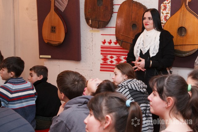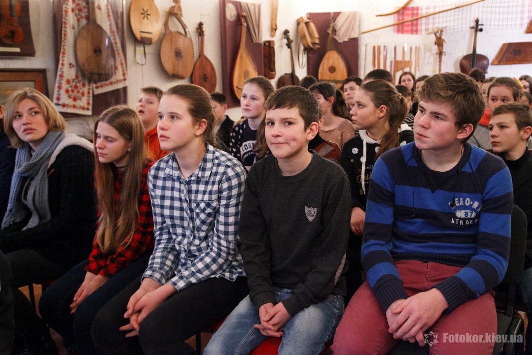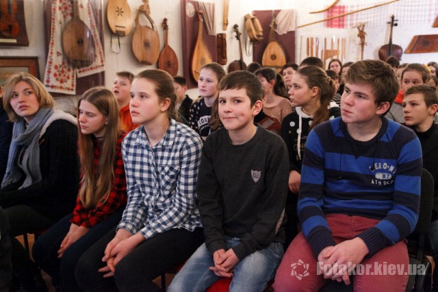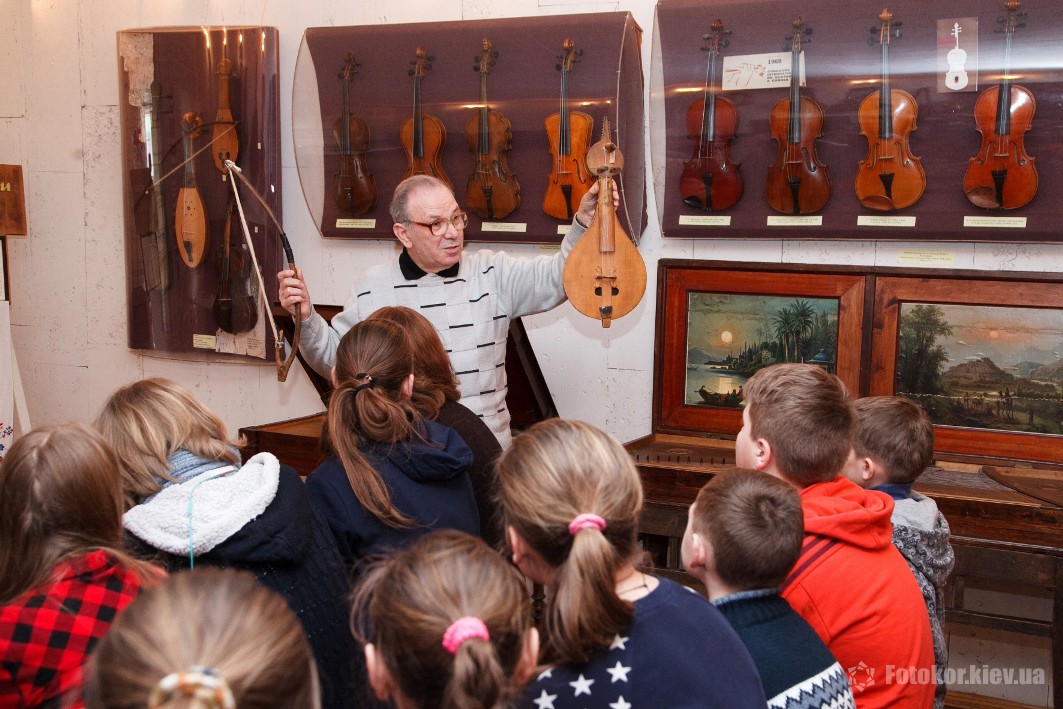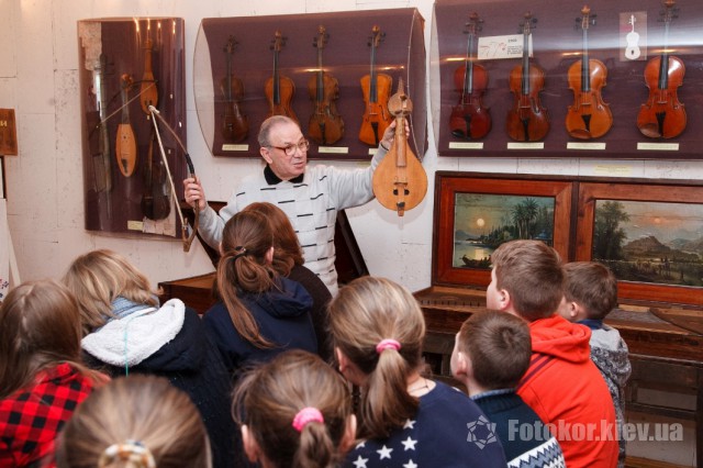 С самого начала экскурсии дети проявили особенную заинтересованность. И неудивительно, ведь это единственный музей такого рода в стране. Коллекция музея начала создаваться в далеком 1923 году художественной группой легендарного театра «Березиль», возглавляемого гениальным режиссером Лесем Курбасом. Начинался он как музей при театре и с первого дня своего основания носил ярко обозначенный национальный характер: Курбас планировал собрать максимально возможное количество предметов, имеющих отношение как к академическому, так и к народному театру Украины. Пополнение коллекции музея продолжалось на протяжении многих лет, а, начиная с 1960-х годов, в основном – его музыкальной коллекции. Самый древний из музейных музыкальных раритетов изготовлен еще в XVIII веке. За несколько десятков лет была собрана непревзойденная коллекция, насчитывающая ныне 600 инструментов, в том числе таких экзотических, как колесная лира, козобас, симфонион. В музее, в частности, хранится уникальная скрипка «украинского Страдивари» – Луки Марьяненко, изготовленная в 1910 году из дерева, выдержанного в нормальной сушке 25 лет, и покрытая настоящим янтарным лаком золотисто-красного цвета. Юным гостям музея была виртуозно продемонстрирована игра на музыкальных инструментах, что особенно впечатлило детишек, ведь такое уникальное звучание на столь старинных и эксклюзивных инструментах они никогда не слышали прежде.
