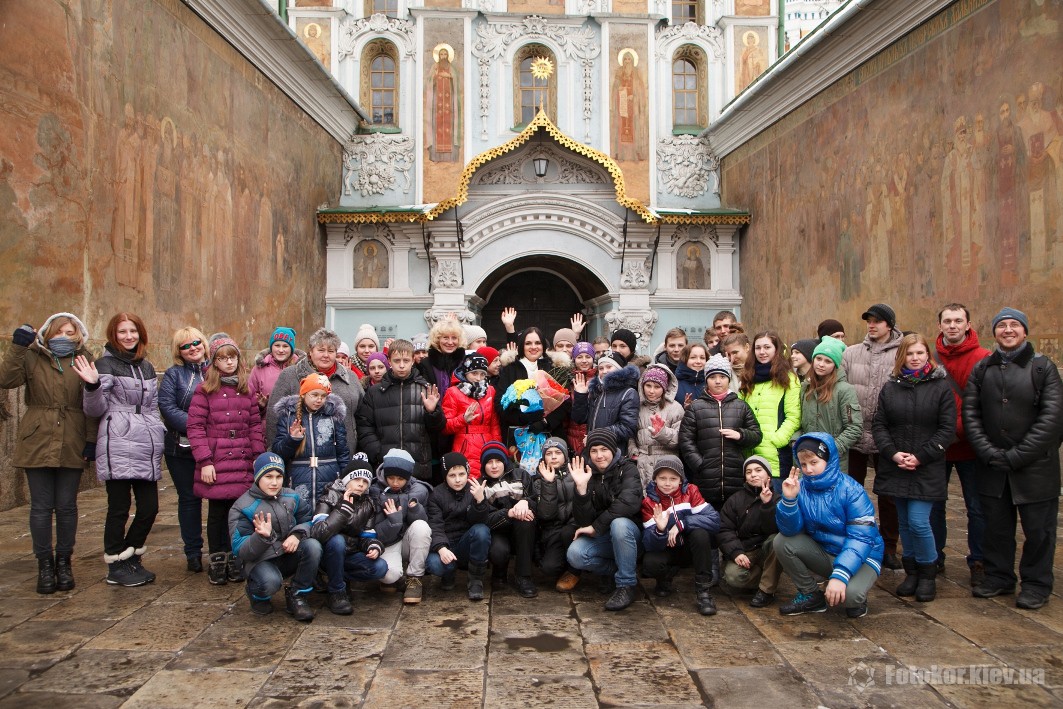 Музей театрального, музыкального и киноискусства входит в комплекс музеев, расположенных на территории Киево-Печерской лавры. Именно там произошла встреча детей со звездной гостьей Мартой Шпак – дети радостно приветствовали Марту цветами. После чего они все вместе отправились осматривать интереснейшие экспозиции музея.