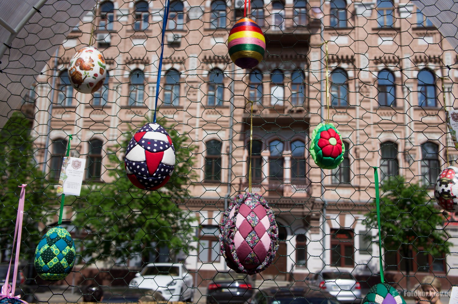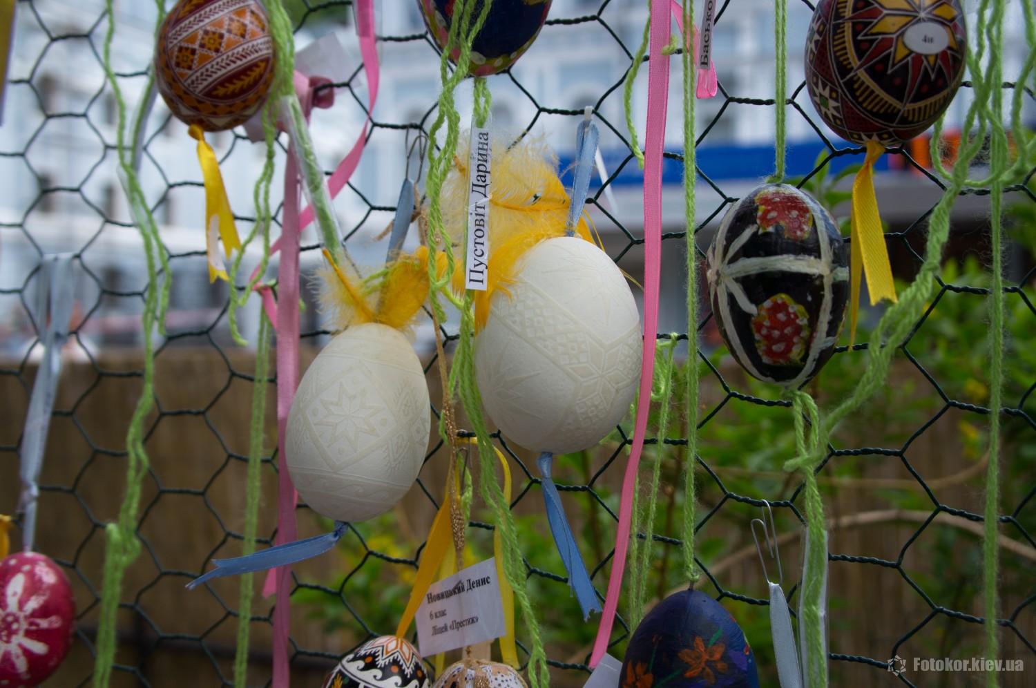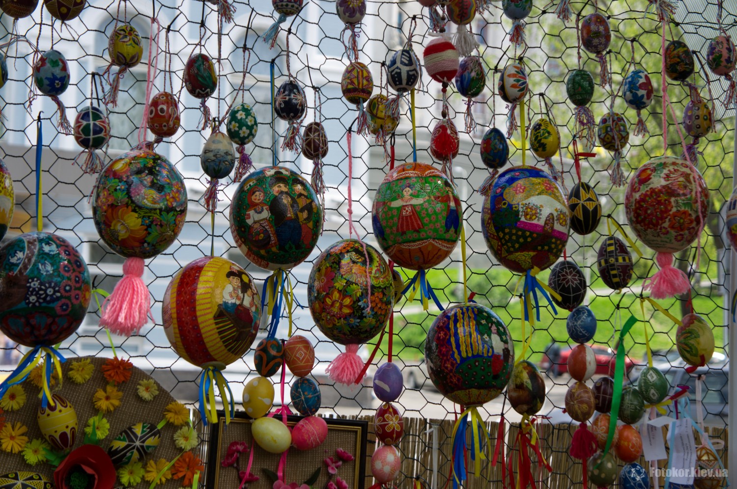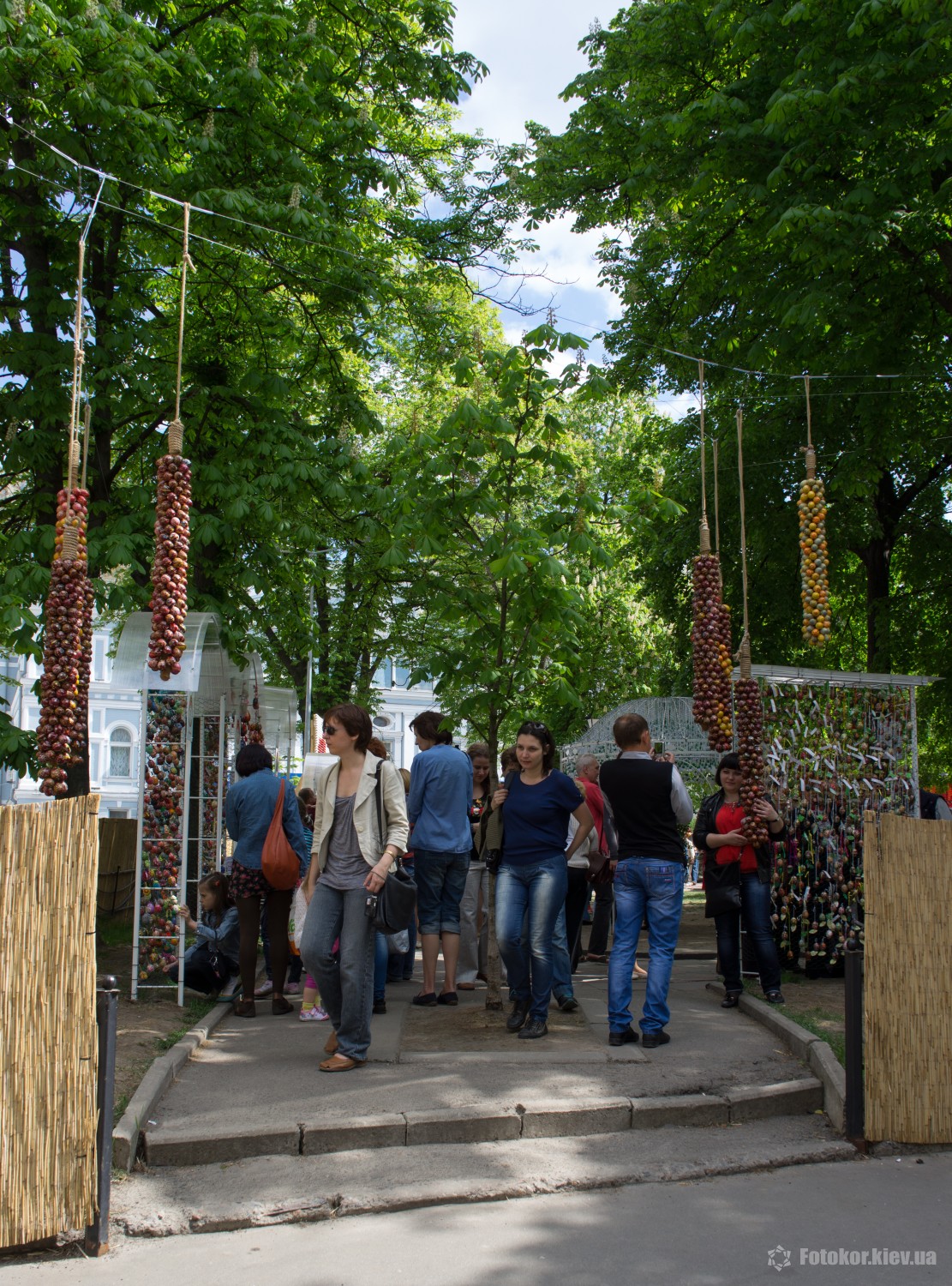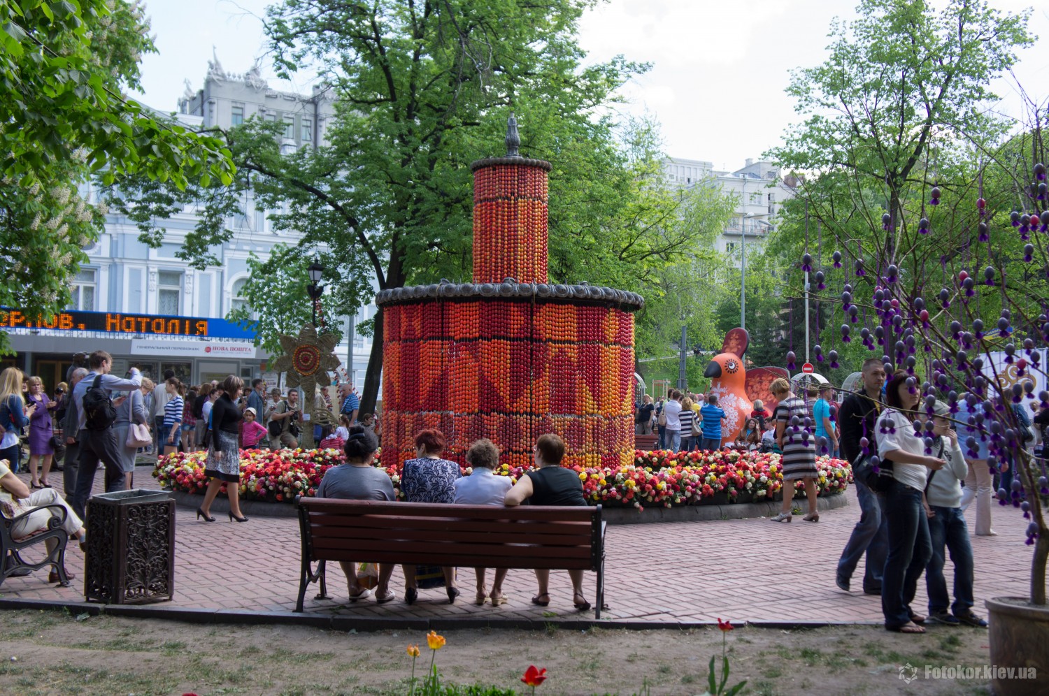 Писанками украшены деревья в сквере, а также старинный фонтан. По периметру сквера установлены специальные металлические беседки и конструкции, на которых развешены десятки тысяч раскрашенных пасхальных яиц.