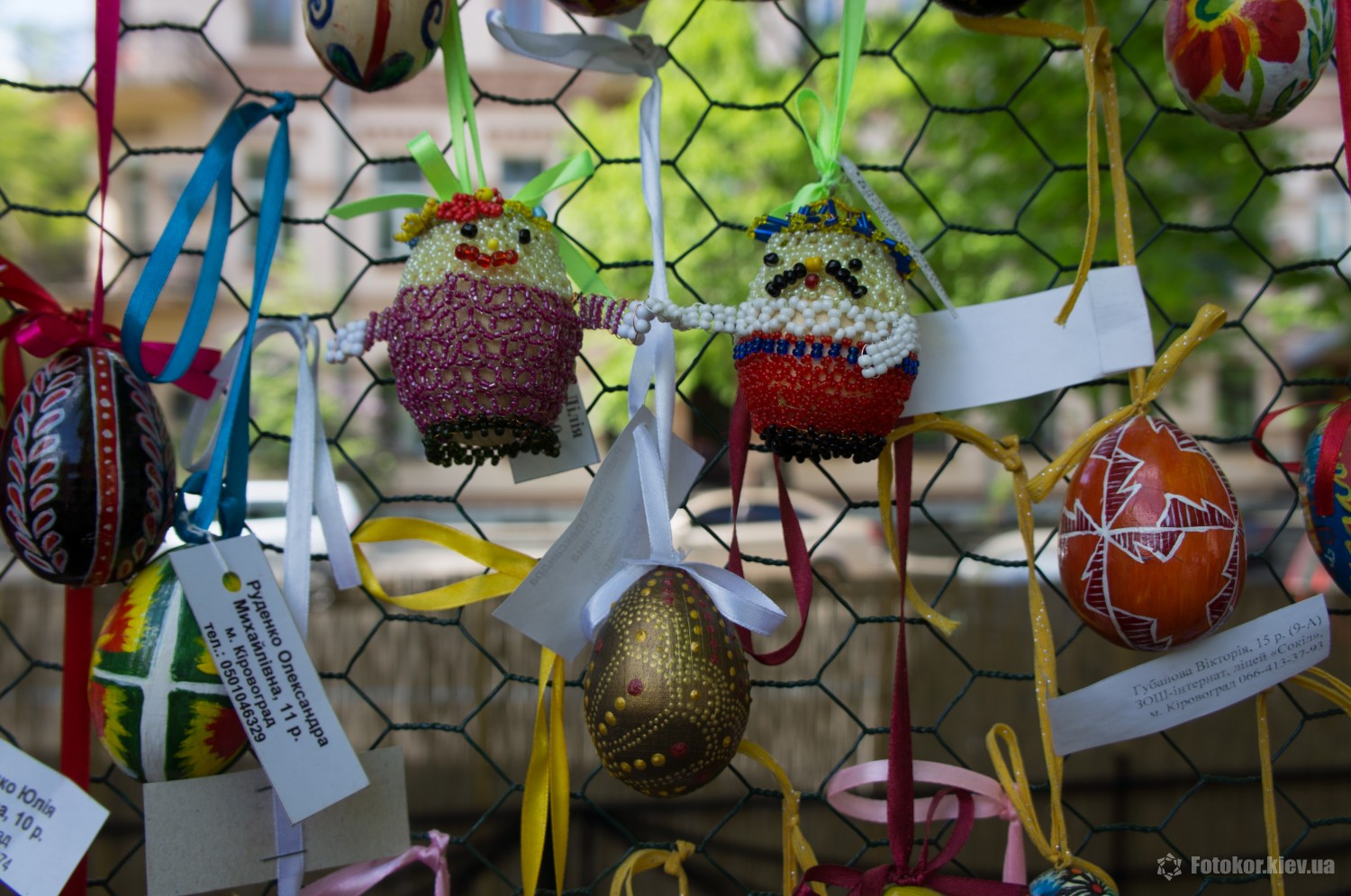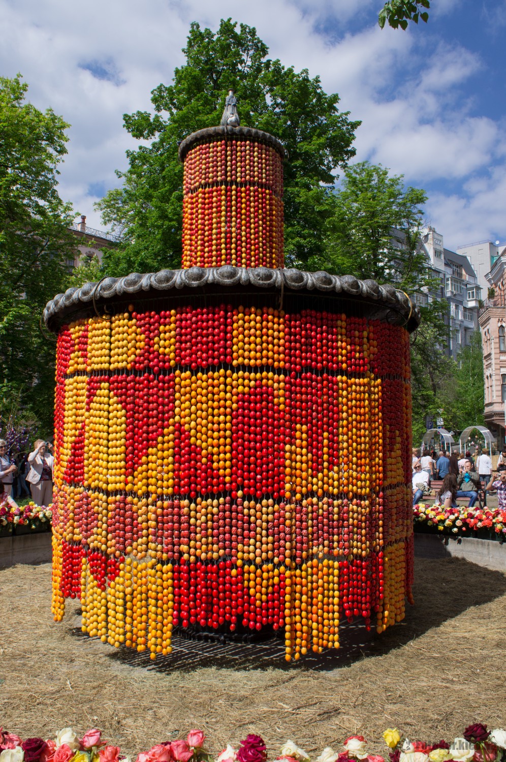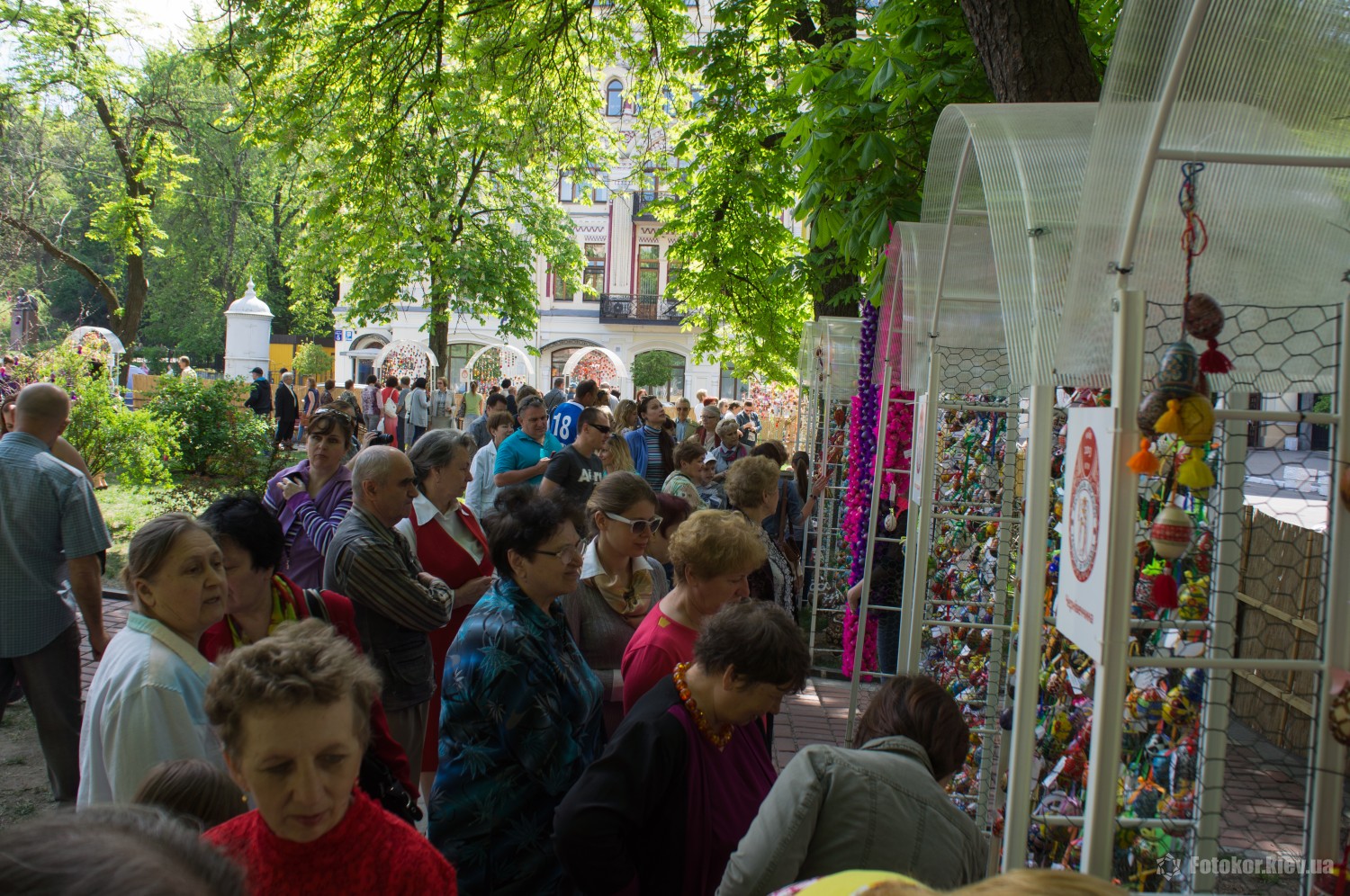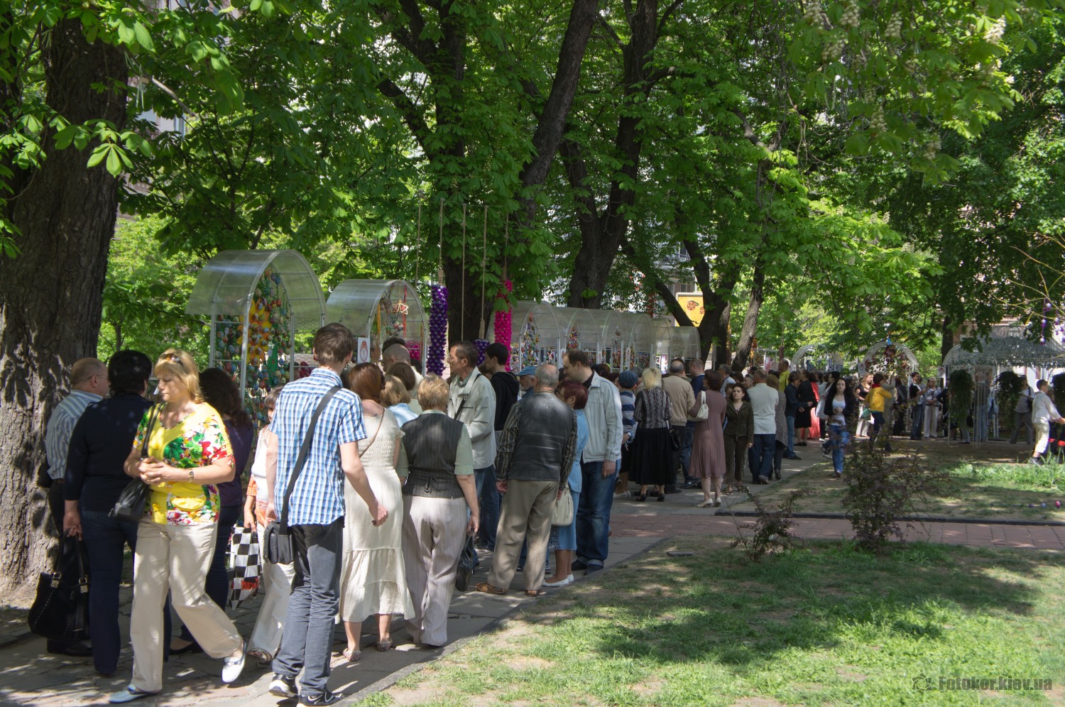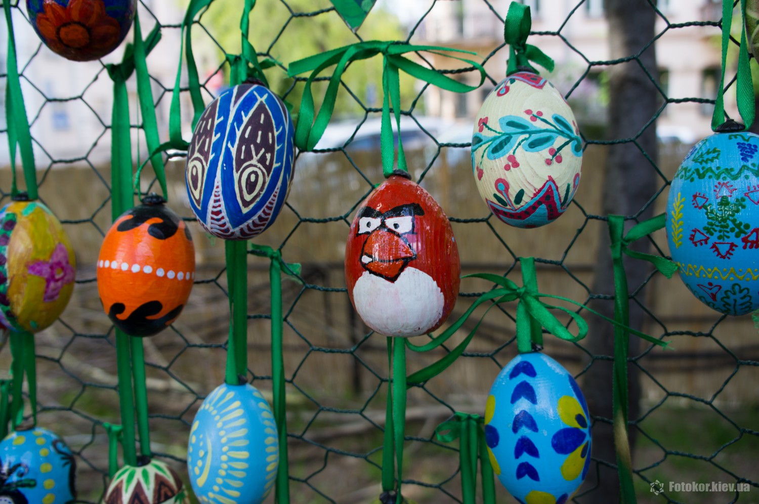 Писанками украшены деревья в сквере, а также старинный фонтан. По периметру сквера установлены специальные металлические беседки и конструкции, на которых развешены десятки тысяч раскрашенных пасхальных яиц.