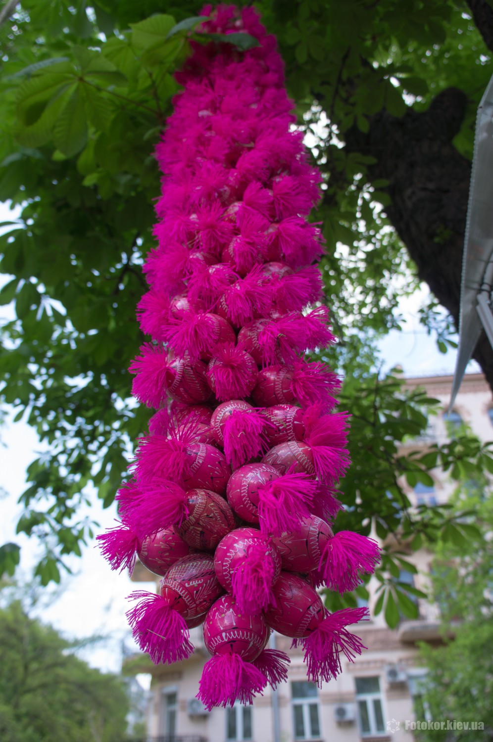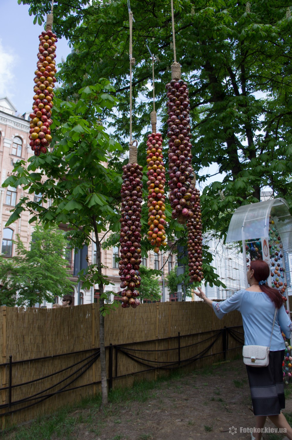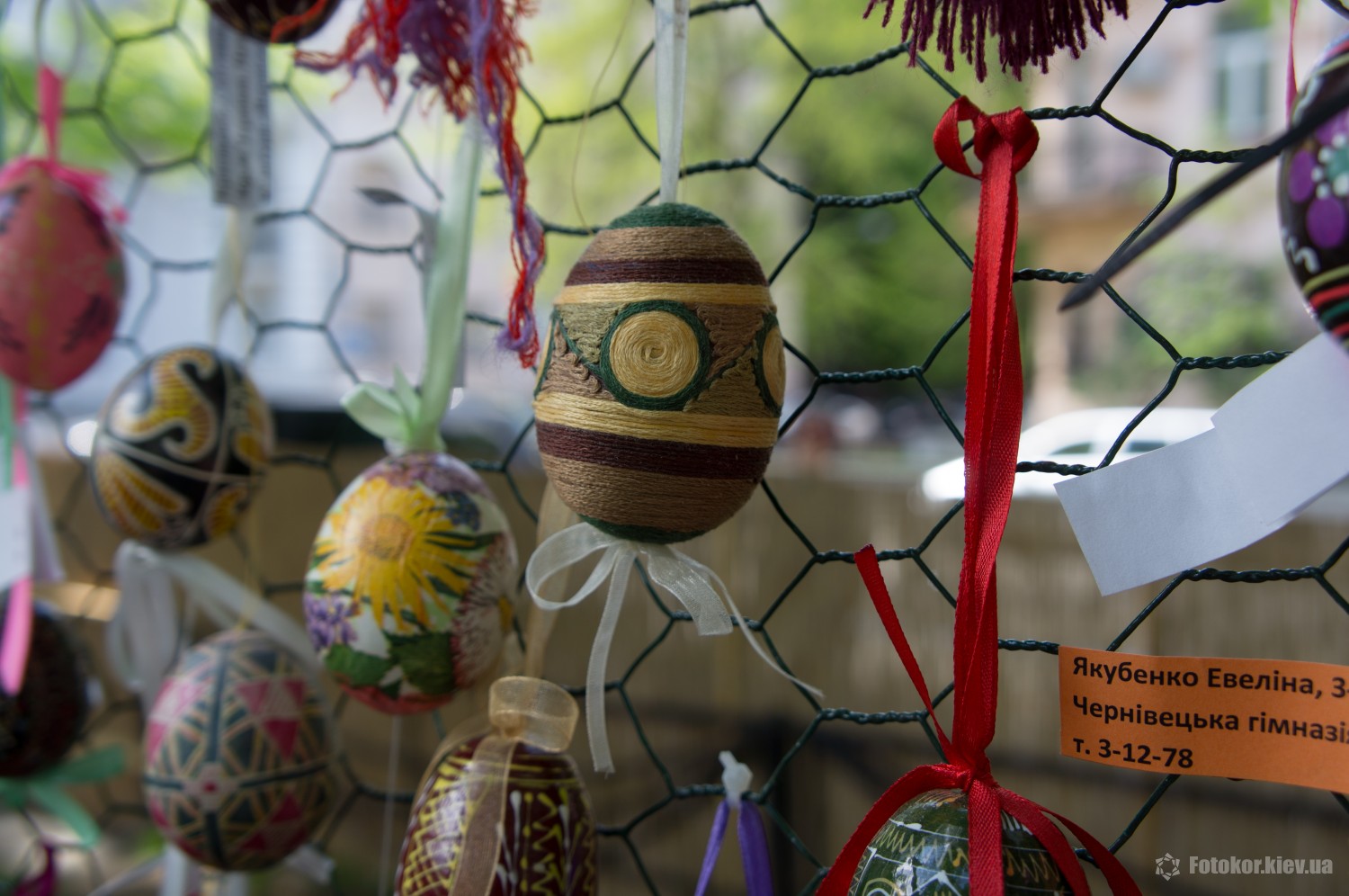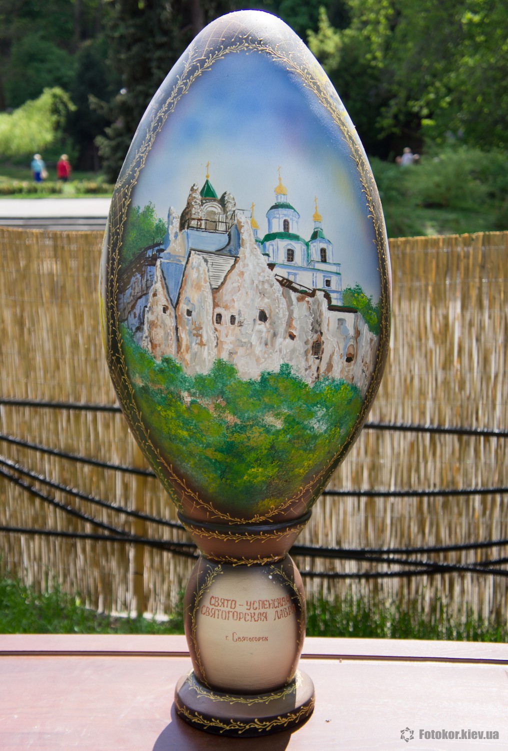 Писанками украшены деревья в сквере, а также старинный фонтан. По периметру сквера установлены специальные металлические беседки и конструкции, на которых развешены десятки тысяч раскрашенных пасхальных яиц.
