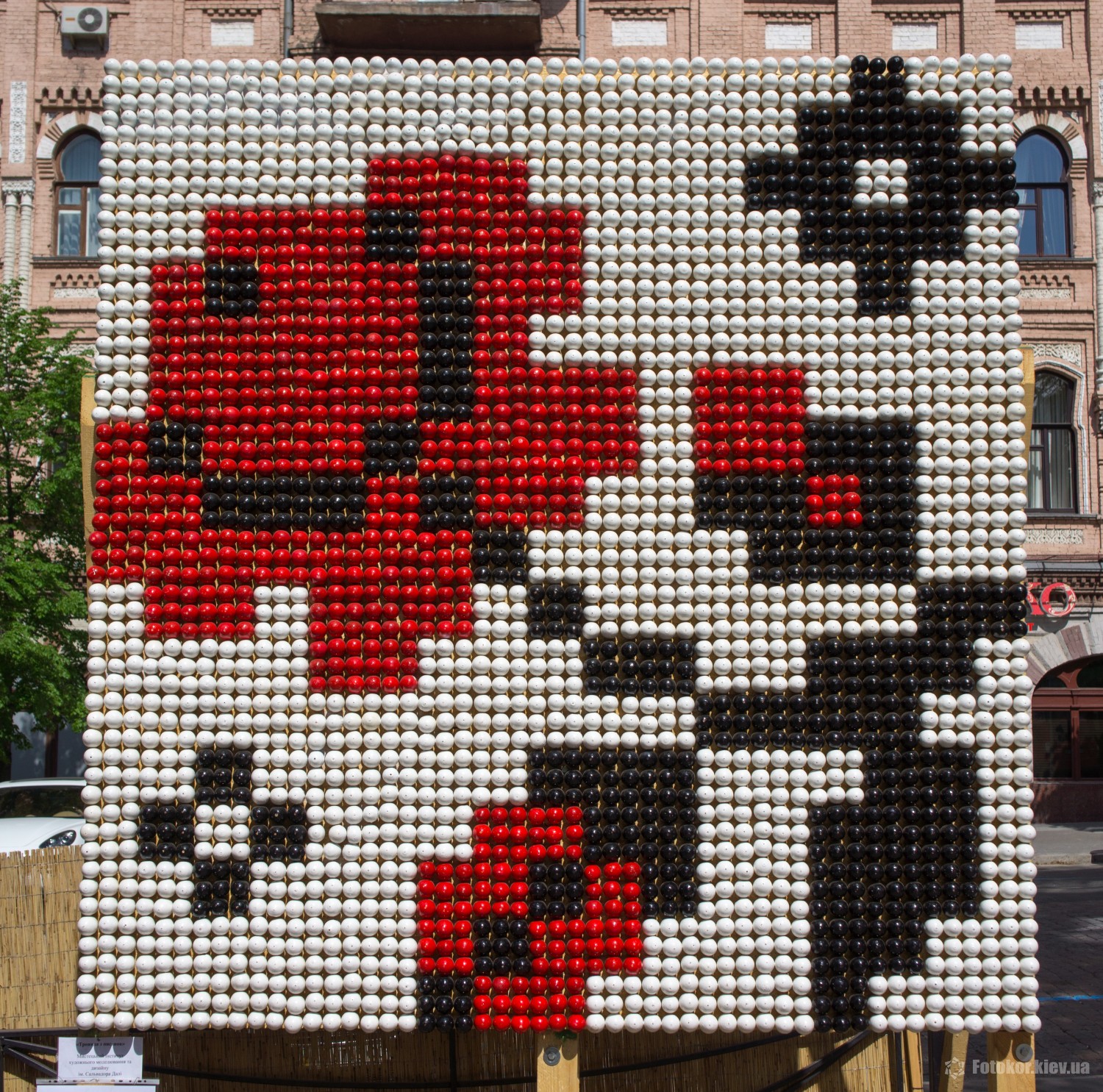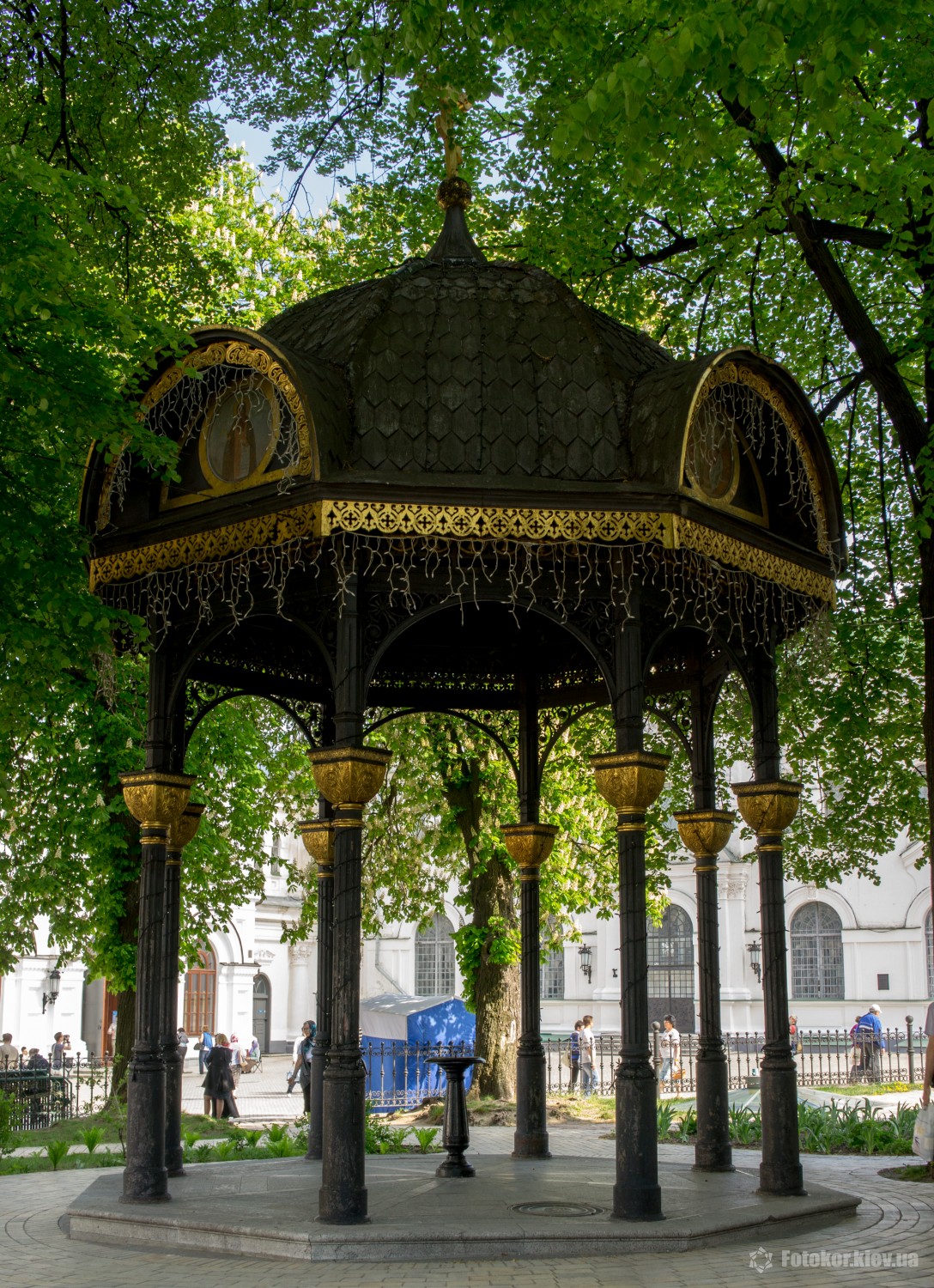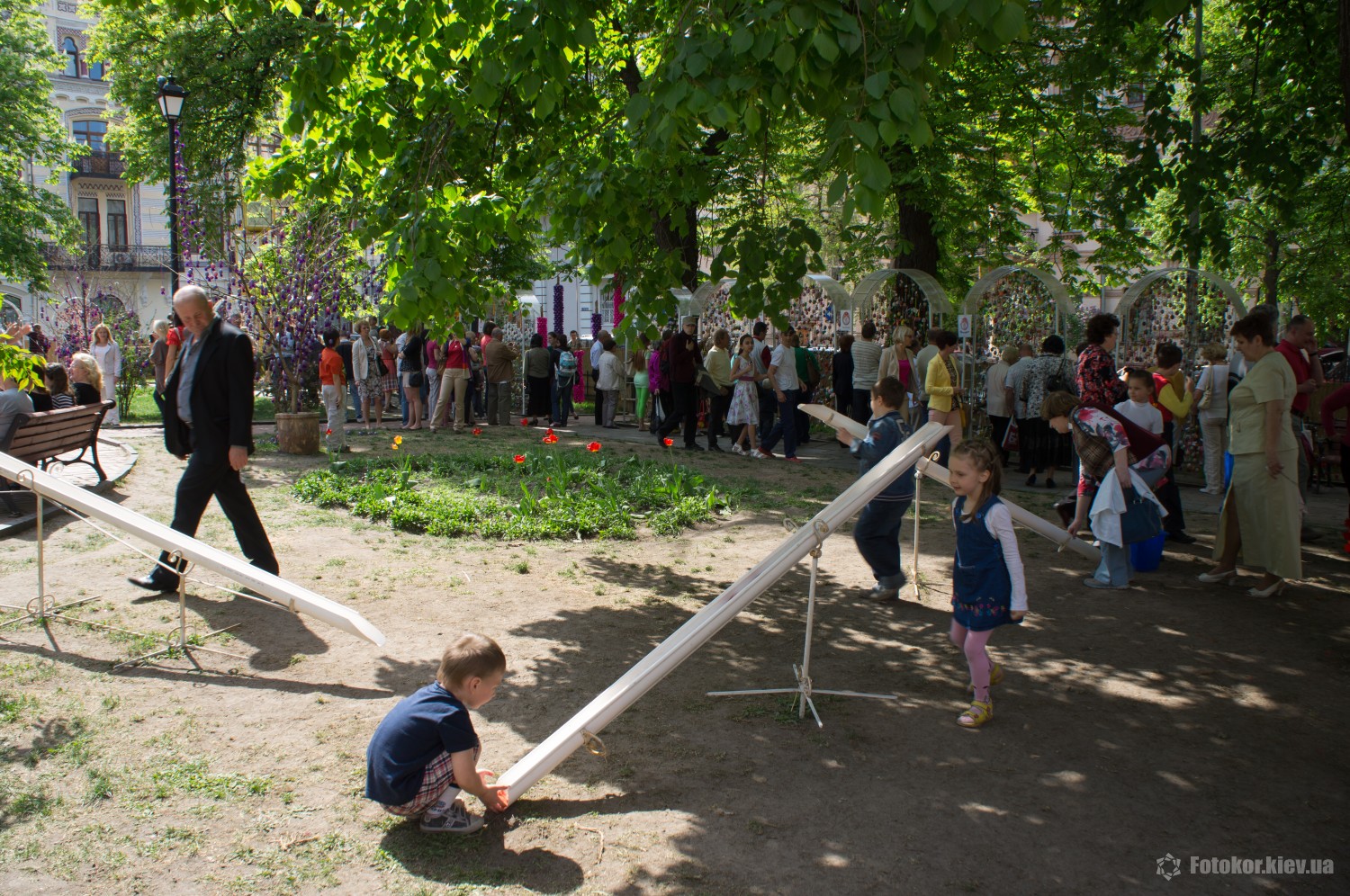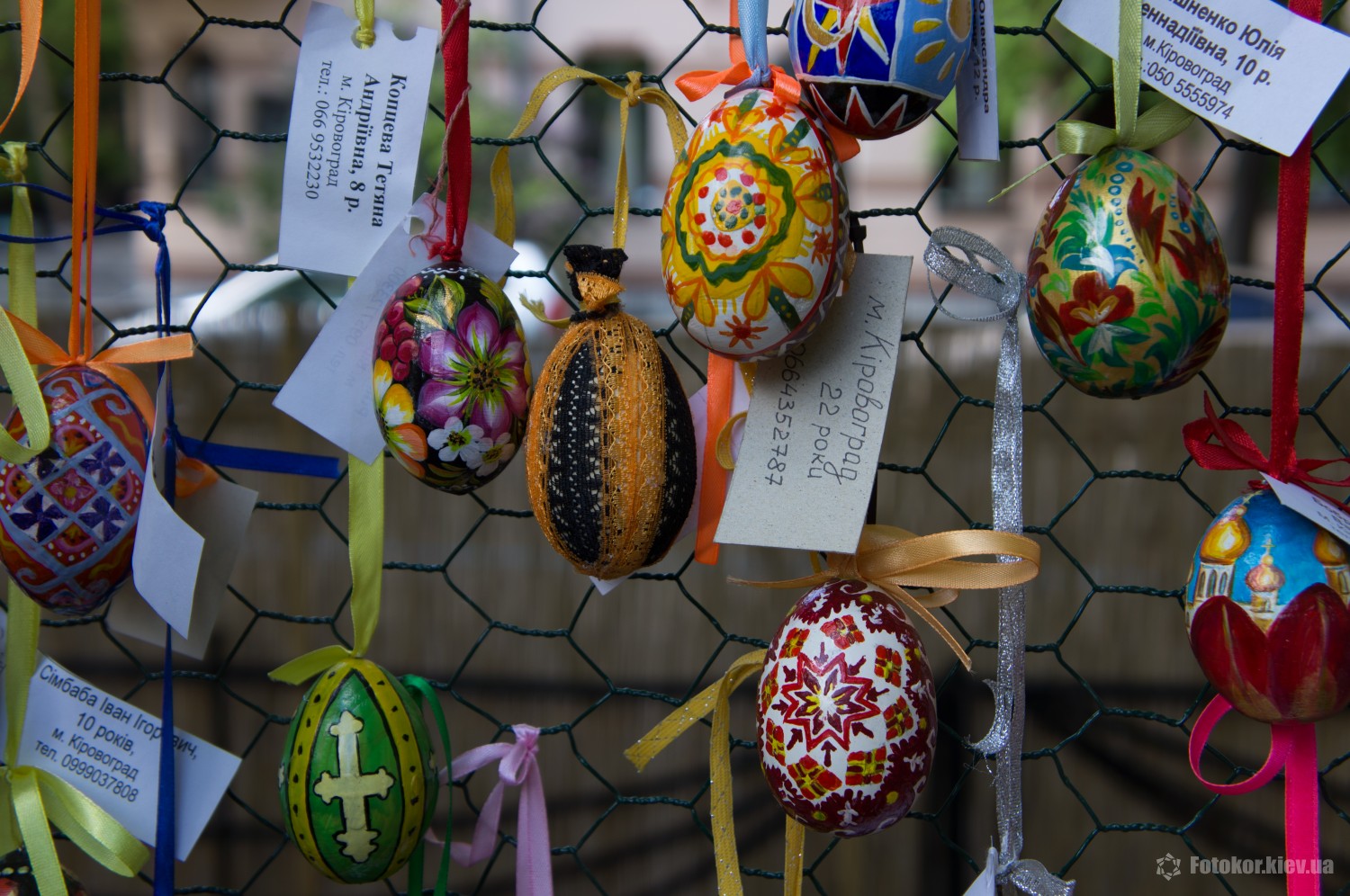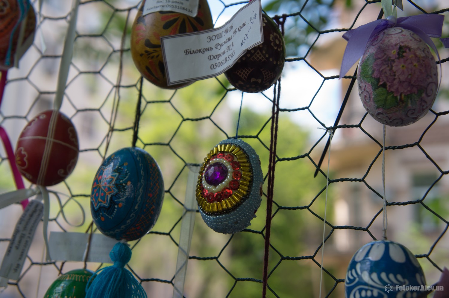 Писанками украшены деревья в сквере, а также старинный фонтан. По периметру сквера установлены специальные металлические беседки и конструкции, на которых развешены десятки тысяч раскрашенных пасхальных яиц.