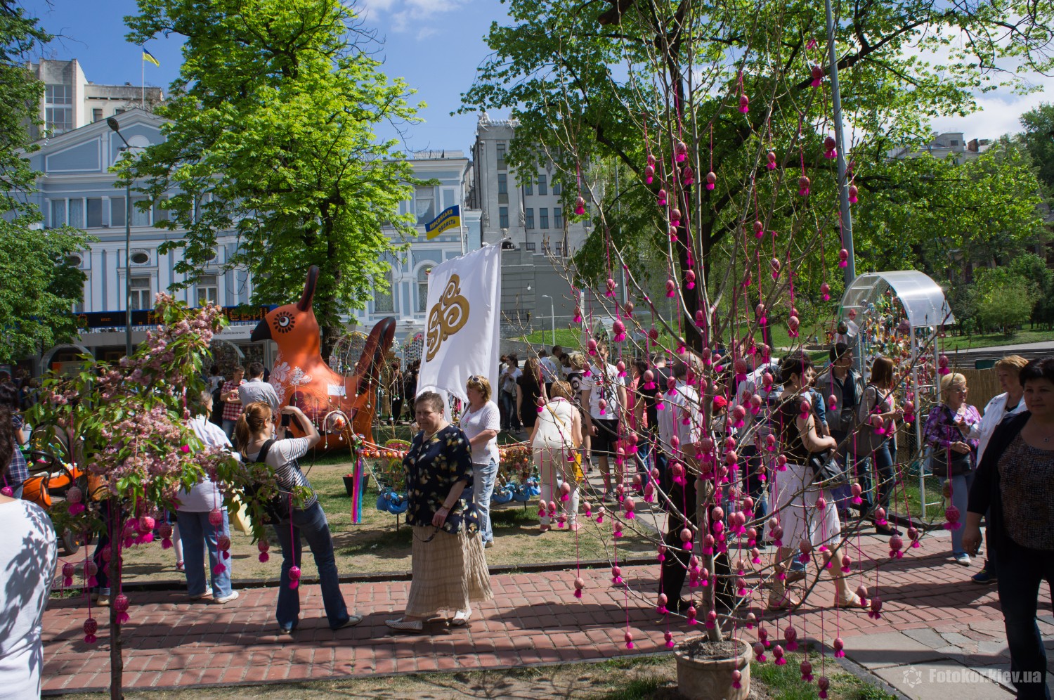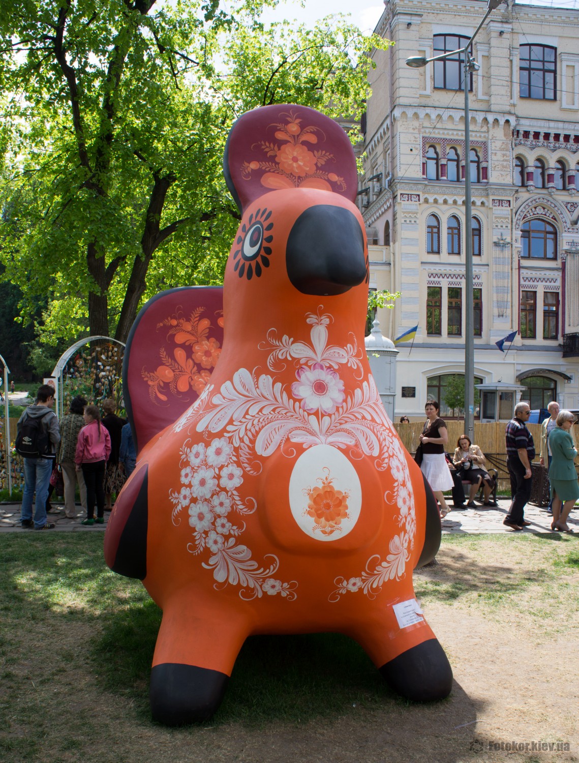 Также в сквере установлена огромная курица, которую раскрасили традиционными для Киевщины цветами. В начале мая здесь планируется установить новый рекорд Украины по наибольшему количеству писанок, представленных со всей страны.
